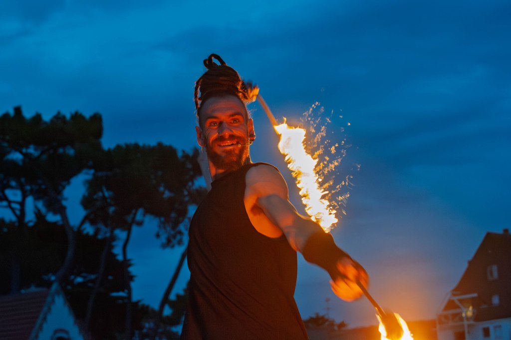 Ce spectacle retrace l’histoire du feu depuis le Big Bang jusqu’à nos jours. Dans cet exposé jonglé, voguez au gré des prouesses enflammées et défis endiablés.